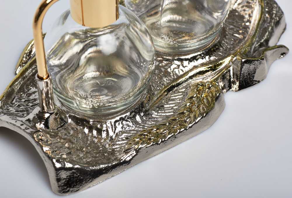Kovové rúčky a uzávery ampuliek zlatej farby.