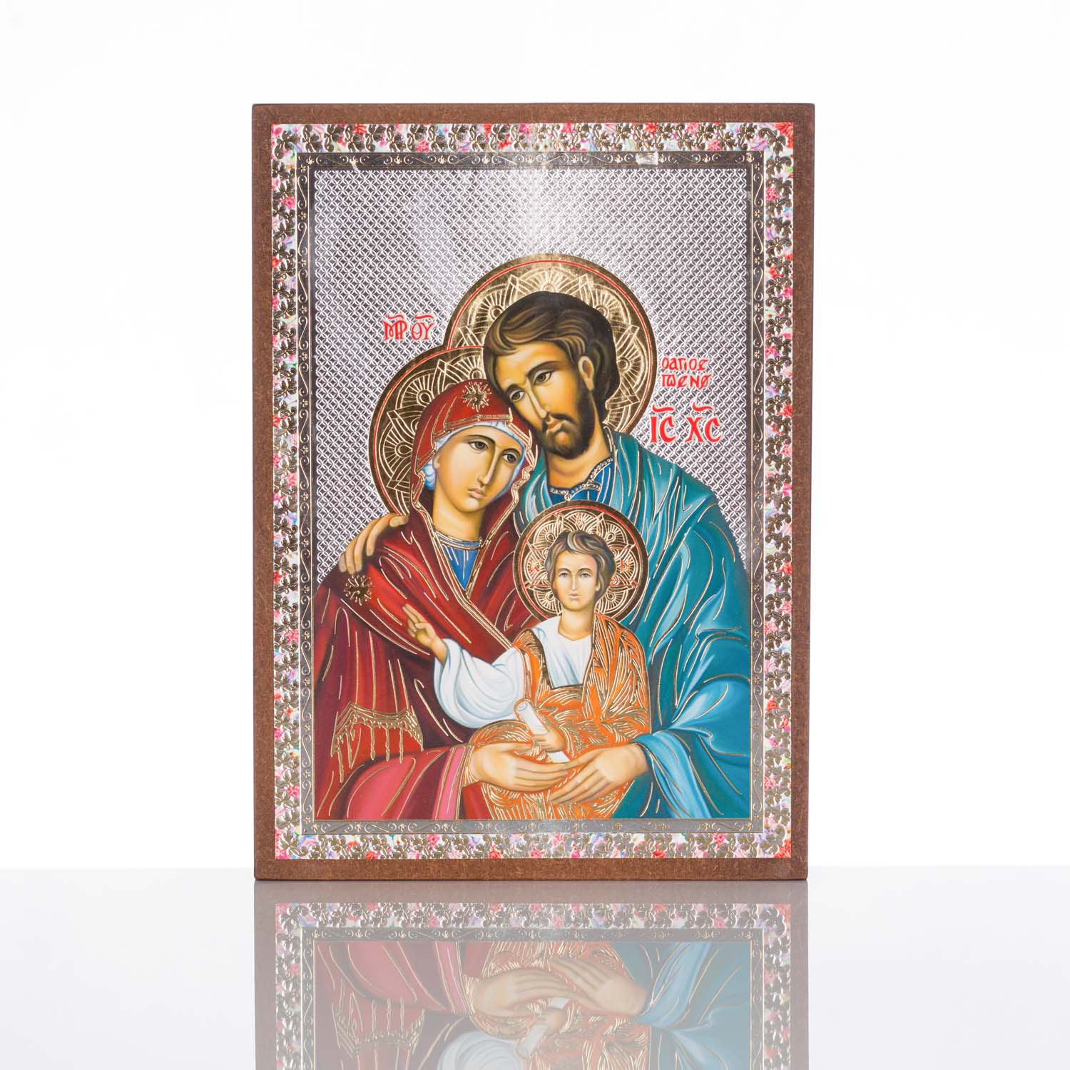 Jedinečný obraz na dreve s krásnym vyobrazením Svätej rodiny. Obrázok Svätej rodiny vytlačený na vysoko kvalitnom materiáli. Panna Mária, svätý Jozef a Ježiš Kristus zobrazení v láskyplnom objatí. Obrázok nalepený na drevenej doske. Obraz vhodný na zavesenie na stenu.