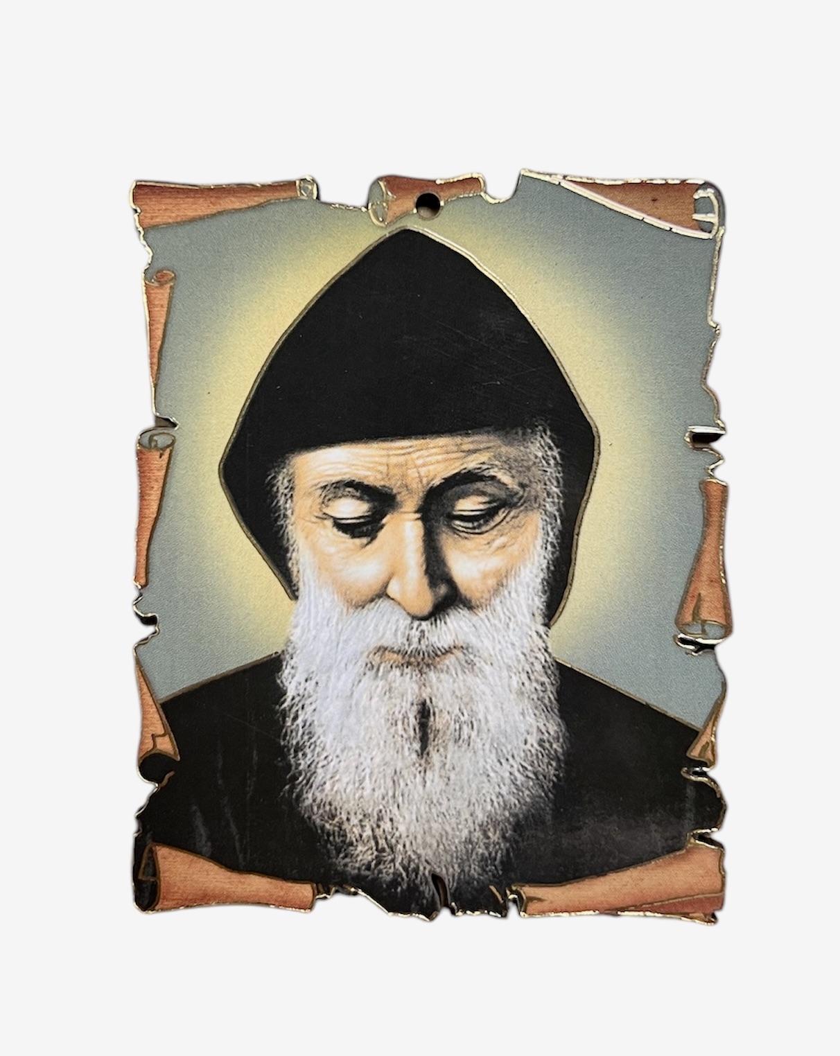 Jedinečný kvalitný drevený obraz s vyobrazením svätého Šarbela. Farby a grafika článku jemne zvýrazňujú každý detail postavy. Výrobok je vyrobený z kvalitného materiálu na báze dreva, ktorého pevná forma očarí každého. Obraz svätého Šarbela sa vyznačuje nádherným zlátením, ktoré zdôrazňuje jednotlivé detaily kompozície.