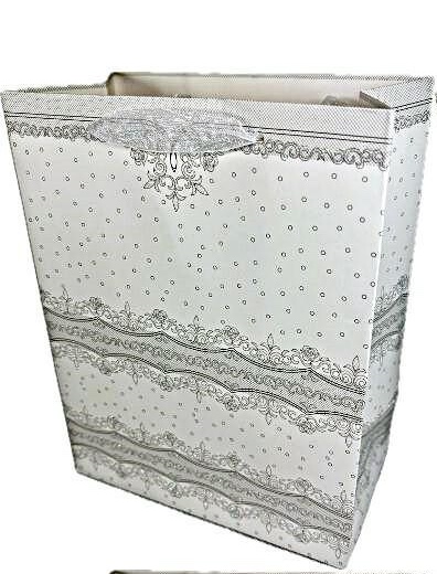 Darčekové tašky vyrobené z pevného a hrubého, vysoko odolného papiera, ozdobené krásnou trblietavou bodkovou ornamentikou. Taška na rôzne príležitosti s potlačou a šnúrkou/stuhou vo farbe tašky. Každá taška má vystužené dno a dobre pripevnené šnúrky/rúčky.