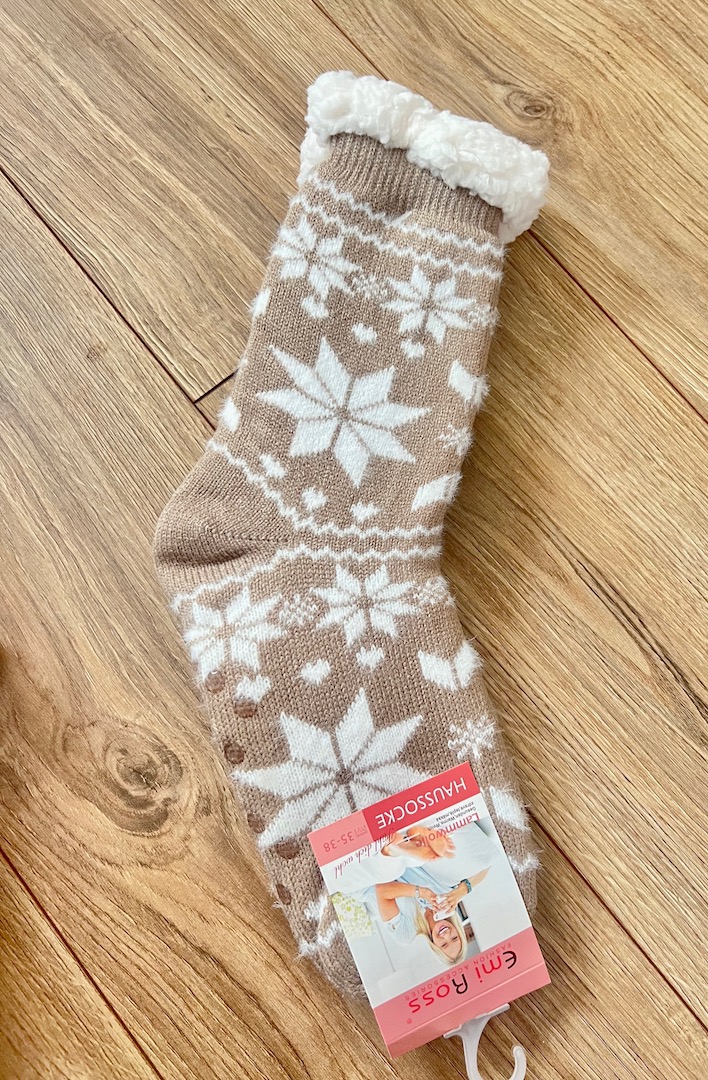 Termo ponožky pre ženy s vianočným vzorom. Úpletové domáce zateplené príjemne mäkkou, jemnou, hrejivou kožušinkou a protišmykové.