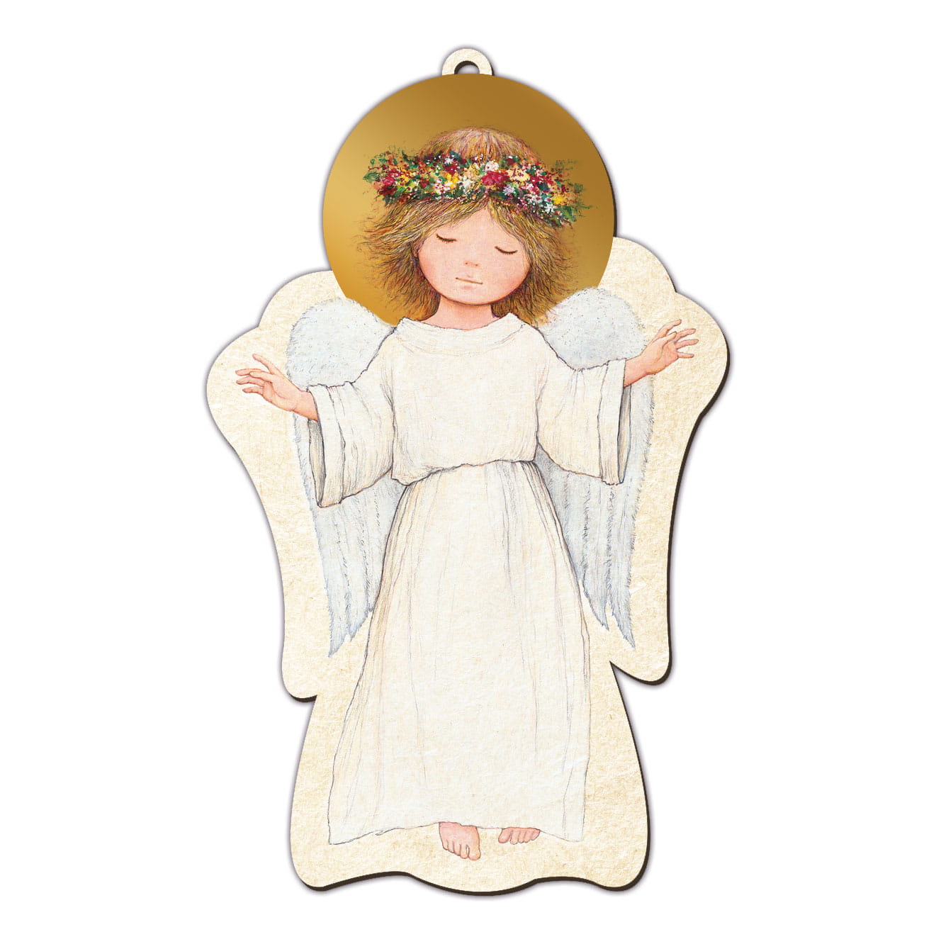 Tento drevený obraz v tvare anjela sa vyznačuje jedinečným umeleckým dielom. Je ideálnym darčekom k prvému svätému prijímaniu alebo krstu.