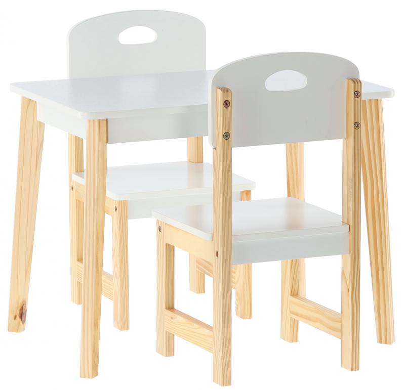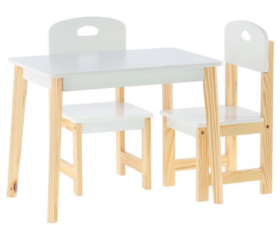 Biely stolík z masívneho dreva je dokonalým kúskom nábytku pre každé dieťa . Stôl bude fungovať ako miesto, kde budú vznikať úžasné diela vášho dieťaťa. Práve pri tomto stole začne rozvíjať svoju kreativitu. Súprava obsahuje dve stoličky s operadlom . Nohy sú vyrobené z borovicového dreva a sedadlo je vyrobené z MDF. Rozmery súpravy sú ideálne pre deti okolo 3 rokov.