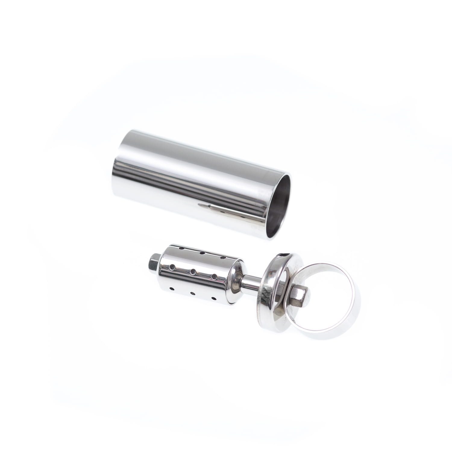Kropáč vyrobený z nehrdzavejúcej ocele, uzavretý. Klasické vreckové kropidlo.