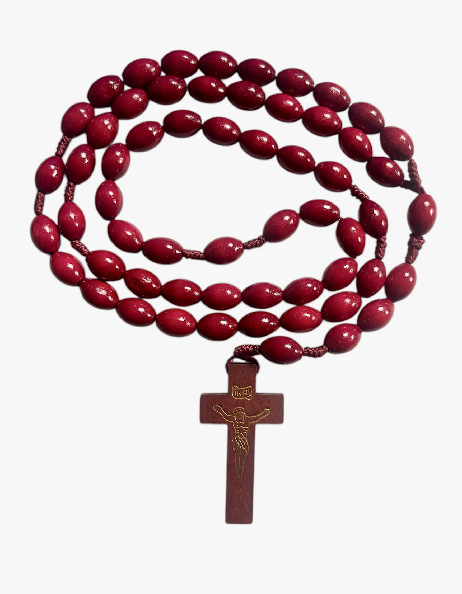 Drevený ruženec na šnúrke vhodný pre starších ľudí, väčšie zrnká.
