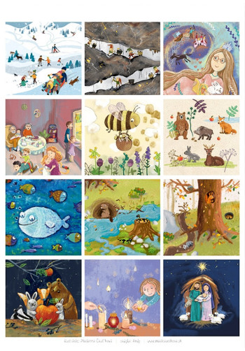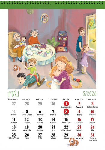 Kalendár je určený pre deti. Na každý mesiac pripadne jedna ilustráciu v ktorej ožije príbeh. Nástenný kalendár je delený po mesiacoch.