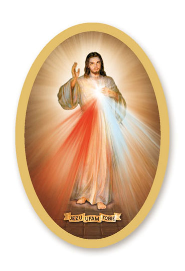 Grafika nálepky zobrazuje obrázok „Ježišu, dôverujem ti“ s vyobrazením Božieho Syna. Samolepiaca fólia umožňuje jednoduchú aplikáciu na akýkoľvek povrch. Produkt je zdobený zlatou termotlačou a chránený UV lakom.