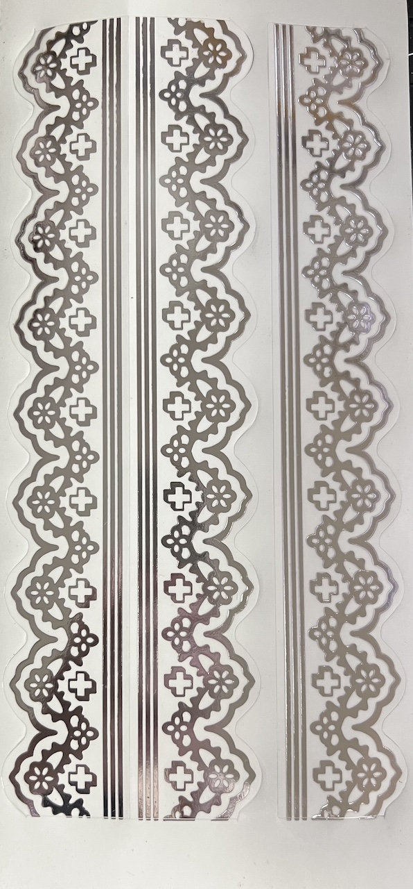 Vyššie uvedená nálepka bude veľmi dekoratívna a zdôrazní jemný tvar každej sviečky. Použitá strieborná potlač dodáva nálepke triedu a eleganciu a ochrana UV lakom zvyšuje odolnosť nálepky.