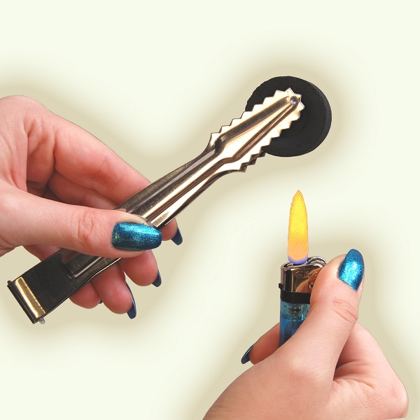 Vysoko kvalitné, pružné oceľové uchopovacie kliešte. Pomáhajú spáliť cigarety bez rizika pádu alebo spálení. Vďaka rezu je rukoväť bezpečná a stabilná. Dĺžka klieští je 15 cm, čo zaisťuje bezpečnú vzdialenosť horiaceho uhlíka od dlaní. Vybavený kovovým špízom na kadenie a kadidla v kadidelnici. Balené v estetickej fóliovej taške.