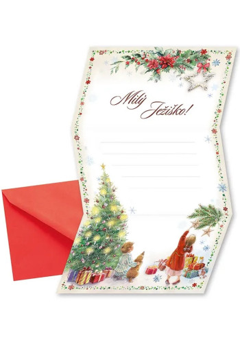 * krásne ilustrovaný listový skladací papier pre deti i dospelých, ktorí chcú Ježiškovi oznámiť svoje priania