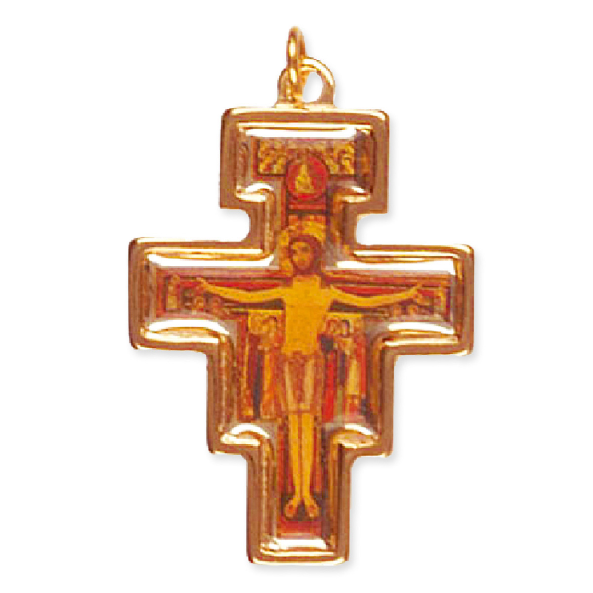 Vyrobený zo zlatého kovu. Smaltovaný priehľadným plastom.