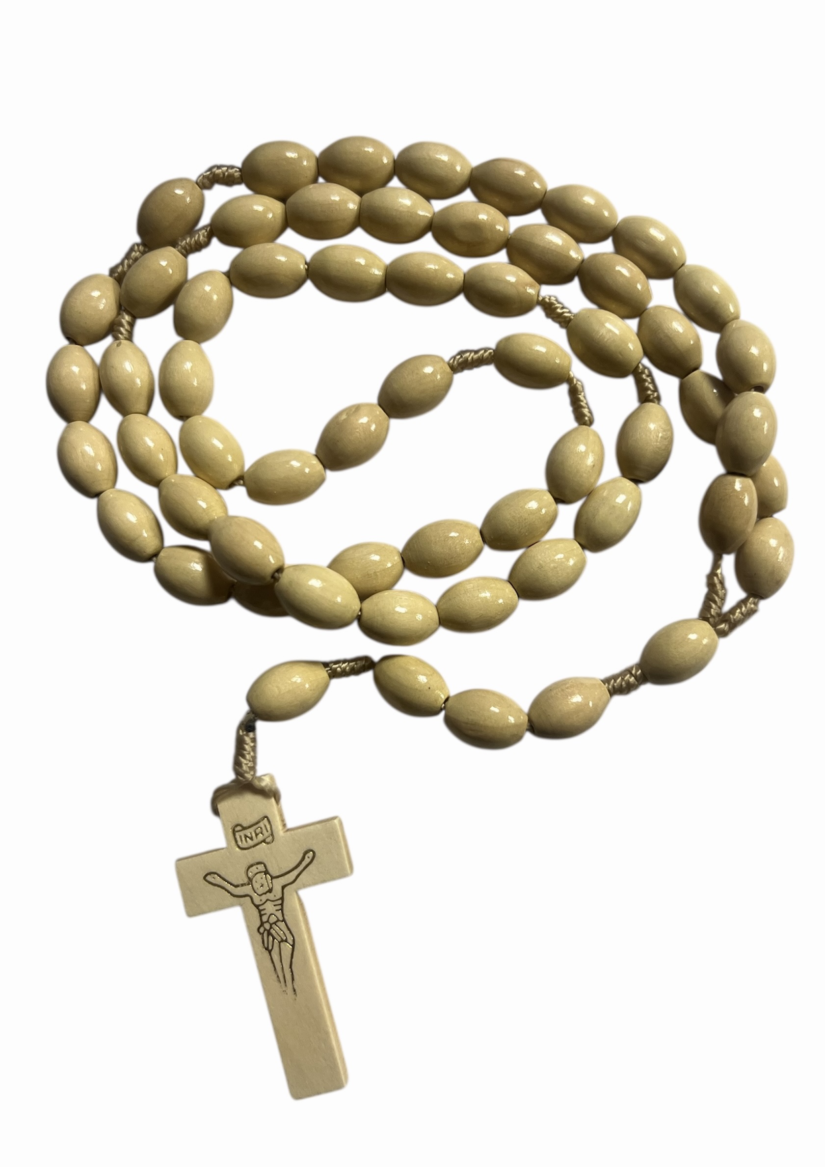 Drevený ruženec na šnúrke vhodný pre starších ľudí, väčšie zrnká.