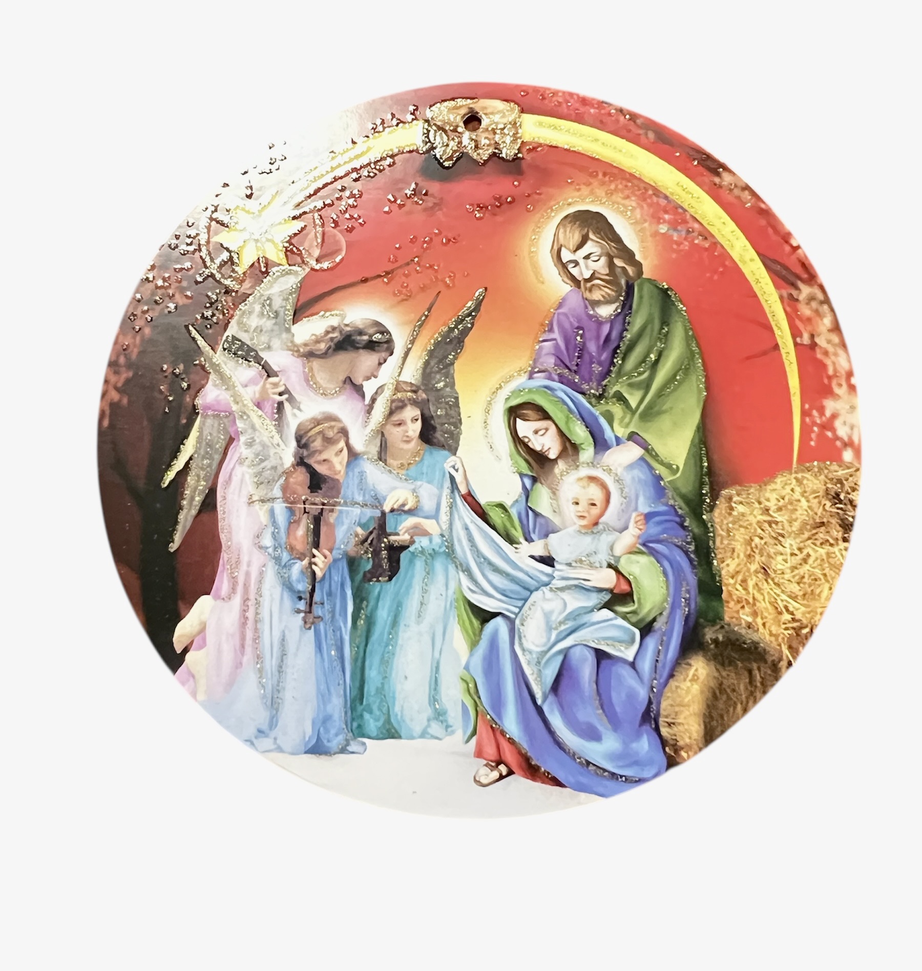 Tvar tejto vianočnej ozdoby na stromček evokuje obraz skutočnej gule. Výrobok sa môže pochváliť nádhernou farebnou paletou a zobrazuje Svätú rodinu: Pannu Máriu, svätého Jozefa a malého Ježiška. Zvieratá sú zhromaždené okolo Svätej rodiny a zvedavo hľadia na Božieho Syna. Celé dielo sa vyznačuje rozmanitosťou farieb a jednotlivé detaily sú zdobené zlatými trblietkami.