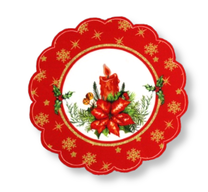 Vianočný obrúsok OKRUHLÝ  červeno-biely SVIEČKA