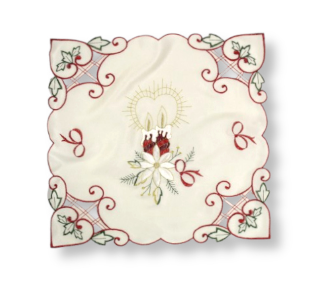 Vianočný obrúsok CREAM s vyšívaným vzorom (vianočná hviezda, sviečky)