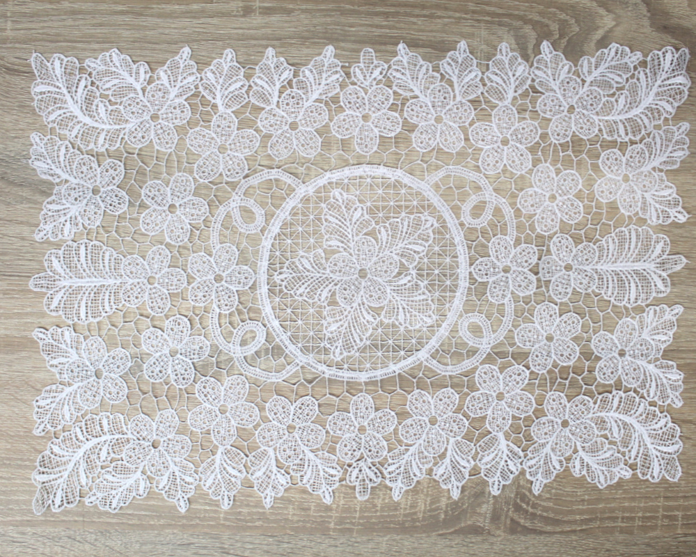 Guipúrový obrúsok OBDĹŽNIKOVÝ  biely KVETY, LISTY