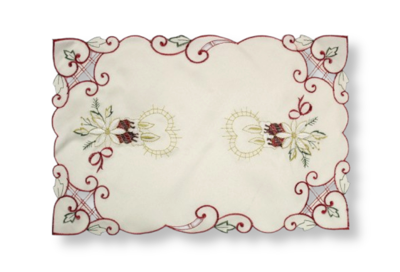 KRÉMOVÝ vianočný obrúsok s vyšívaným vzorom (vianočná hviezda, dve sviečky)